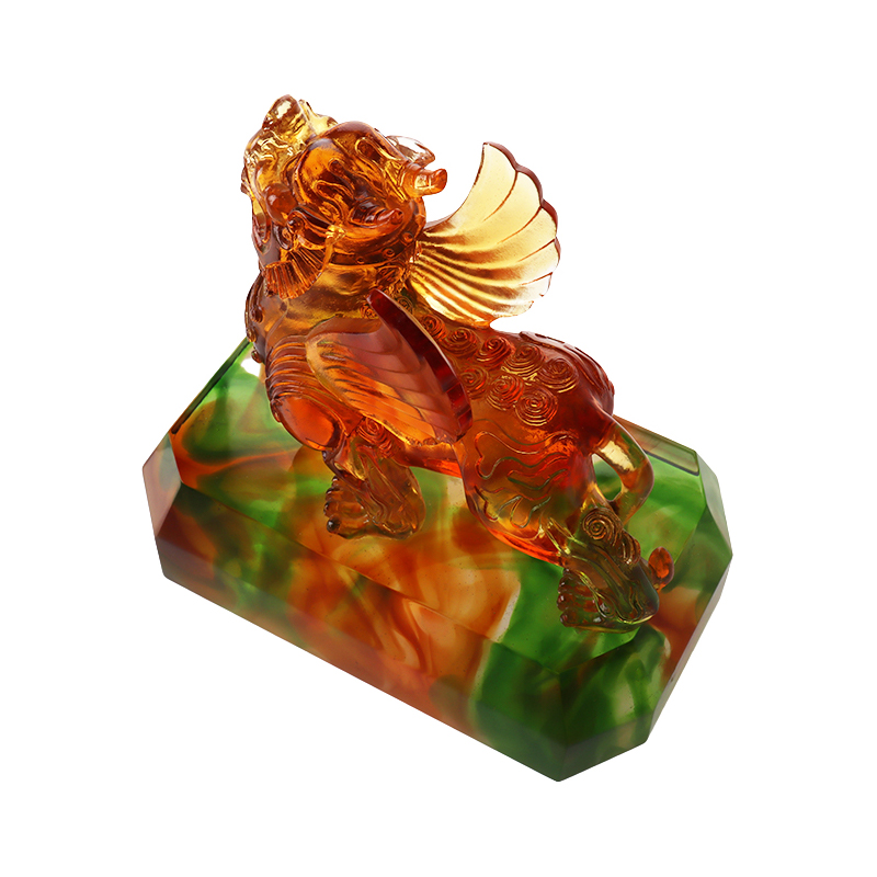 Ó thaobh na ceardaíochta, tá uigeacht na gloine gloinithe soiléir criostail. Sa obair seo, tá trédhearcacht agus glossiness na gloine gloinithe, rud a fhágann go bhfuil íomhá an beithíoch níos tríthoiseach. Cibé mar mhaisiúchán nó mar shiombail chultúrtha, níl aon dabht ach gur taisce é an beithíoch miotasach glónraithe daite seo atá in ann blas agus luach ealaíne a léiriú. Nascann sé go hinmhianaithe cumhacht mistéireach an beithíoch miotasach le háilleacht glaze daite, rud atá taitneamhach don tsúil.
