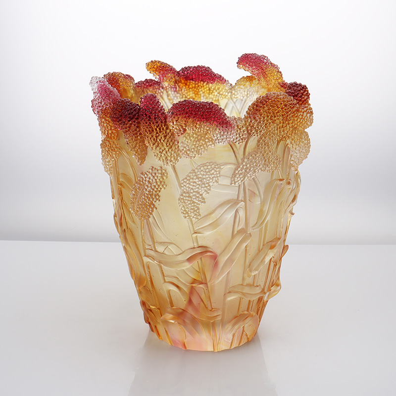 Sa deireadh seasann fómhar mar “léiriú comhaimseartha ar thraidisiún”: déantar bunbhrí spioradálta an tsorgum a athbheochan trí thréshoilseacht gloine, agus úsáideann dathanna grádáin am mar scuab chun filíocht na talmhaíochta a phéinteáil. Déanann réitigh céir caillte na teicnící ársa a bhí díomhaoin sa ré nua-aimseartha a athbheochan. Nuair a scagtar solas tríd an árthach, nochtann scáthanna luascadh na gcluasa gránach ní hamháin soiléireacht chriostalach na gloine agus subtlety na ceardaíochta, ach freisin dríodrú agus athbhreith cuimhne an domhain laistigh den ré - meabhrúchán a léiríonn an fómhar ní hamháin flúirse ábhartha, ach tarchur ó ghlúin go glúin de ghéinte cultúrtha agus beogacht chruthaitheach na ceardaíochta comhaimseartha.